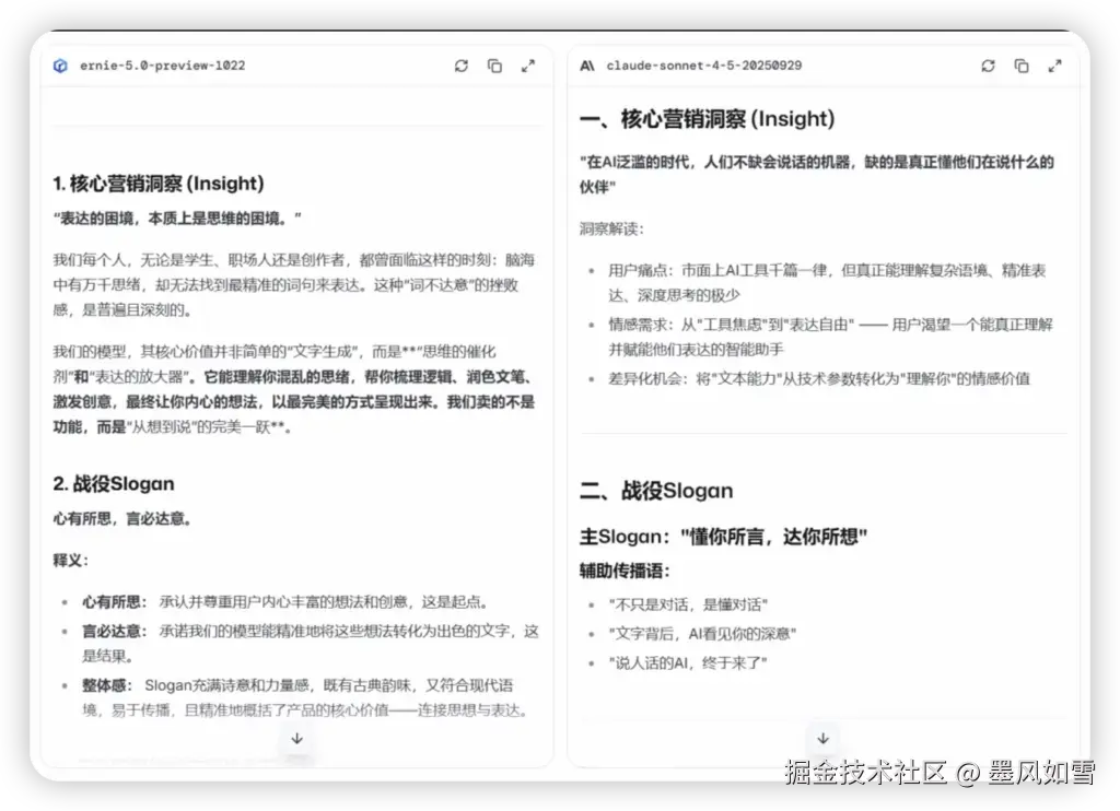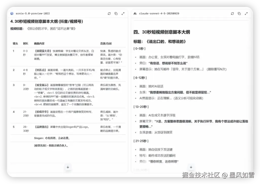 要说最让人拍案叫绝的,必须是文心5.0 Preview在创意写作 上的统治力------它在这个维度拿下了全球第一!这意味着,无论是策划一场声势浩大的营销战役、撰写引人入胜的剧本,还是生成一篇情感真挚的文章,它的产出都能在效率和质量上实现大幅跃升。有实测案例显示,在策划一场营销战役时,文心5.0 Preview不仅能抓住"情绪价值"的核心洞察,连输出的短视频脚本都专业到令人惊叹,画面、剪辑点、音效等执行细节一应俱全,这可不是简单的堆砌文字,而是真正意义上的"妙笔生花"。