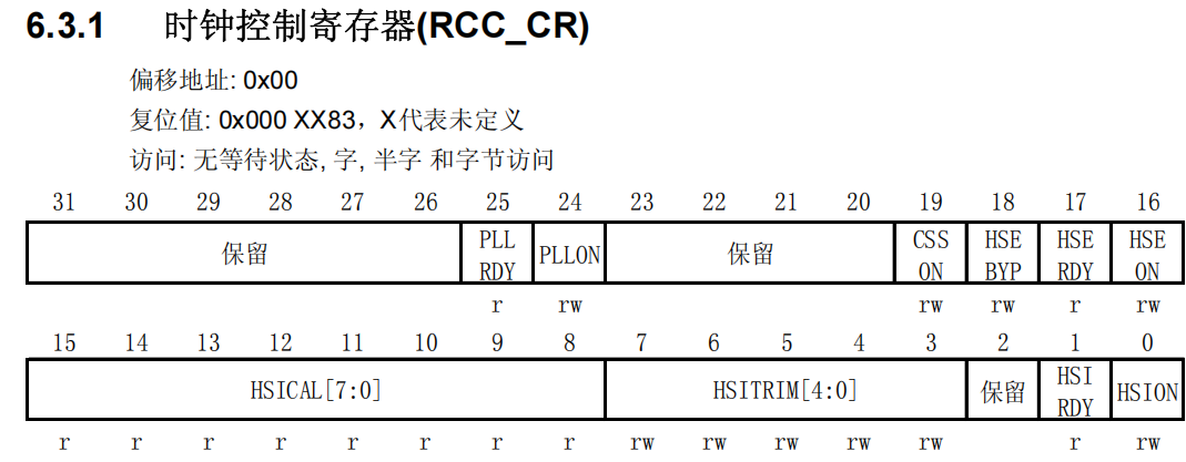 首先,代码执行 RCC->CR |= ((uint32_t)RCC_CR_HSEON);来使能HSE。它控制的是RCC_CR寄存器的HSEON位(第16位)来启动外部8MHz晶振,将该位置1以使能HSE。因为开发板上用的是无源晶振,起振时需要配合起振电容,需要一段时间。启动完毕后,RCC_CR寄存器的HSERDY位(硬件)会置1,我们通过判断这个位是否置1来判断HSE是否启动成功。