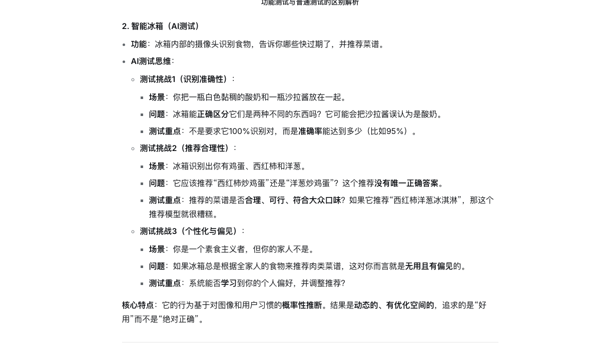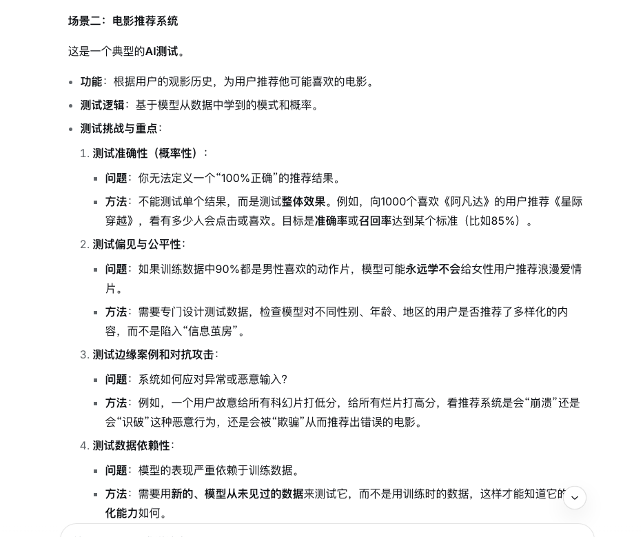 3. 场景化测试:不局限于"功能对不对",更关注"不同场景下模型表现好不好、安不安全"。