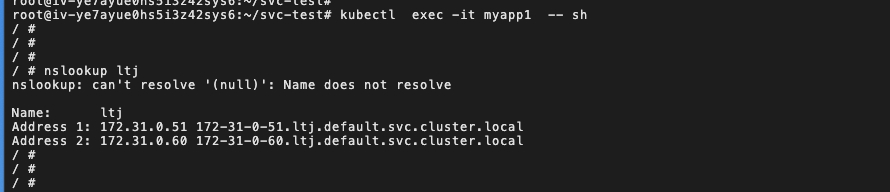 方式1: 可以进入pod里面,然后执行nslookup 服务名(随便哪个pod都行)