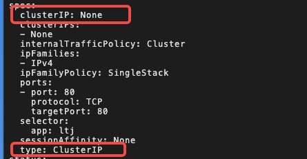 对于无头 Services 并不会分配 Cluster IP,kube-proxy不会处理它们, 而且平台也不会为它们进行负载均衡和路由,集群访问通过dns解析直接指向到业务pod上的IP,所有的调度有dns单独完成