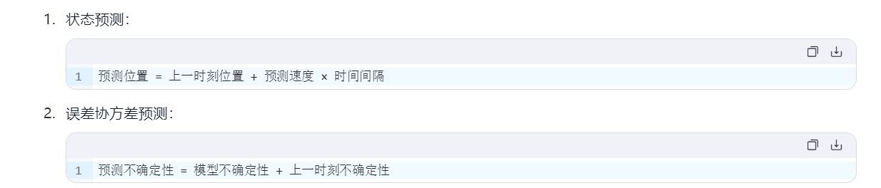 - 预测阶段:基于系统模型,预测下一时刻的状态