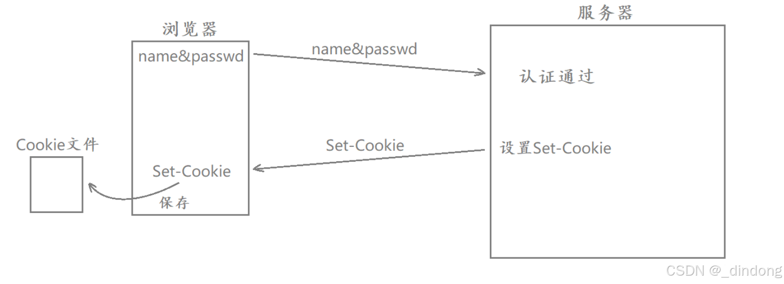 当认证通过并在服务端进行Set-Cookie设置后,服务器在对浏览器进行HTTP响应时就会将这个Set-Cookie响应给浏览器。而浏览器收到响应后会自动提取出Set-Cookie的值,将其保存在浏览器的cookie文件当中,此时就相当于我的账号和密码信息保存在本地浏览器的cookie文件当中。