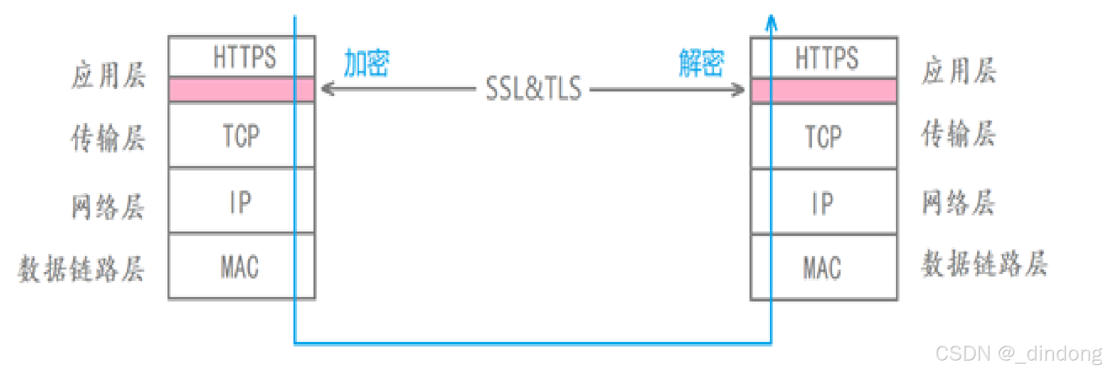 为了解决这个问题,于是出现了HTTPS协议,HTTPS实际就是在应用层和传输层协议之间加了一层加密层(SSL&TLS),这层加密层本身也是属于应用层的,它会对用户的个人信息进行各种程度的加密。HTTPS在交付数据时先把数据交给加密层,由加密层对数据加密后再交给传输层。
