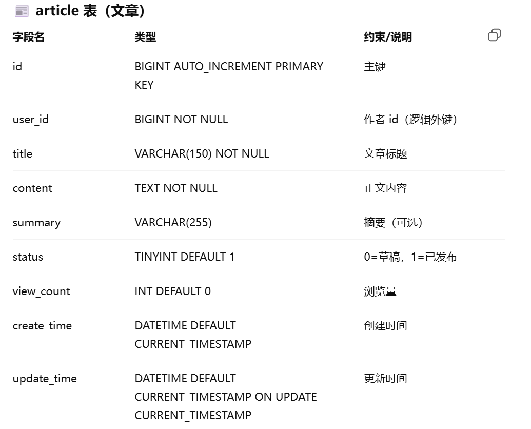 这样既能满足基本功能,也方便后续扩展,比如角色、状态、头像字段等。