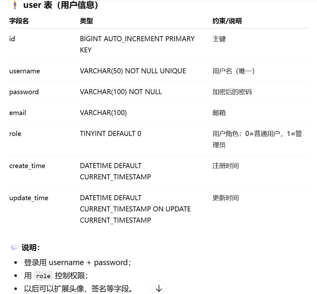💬 Q10:你在设计用户表时考虑了哪些字段?