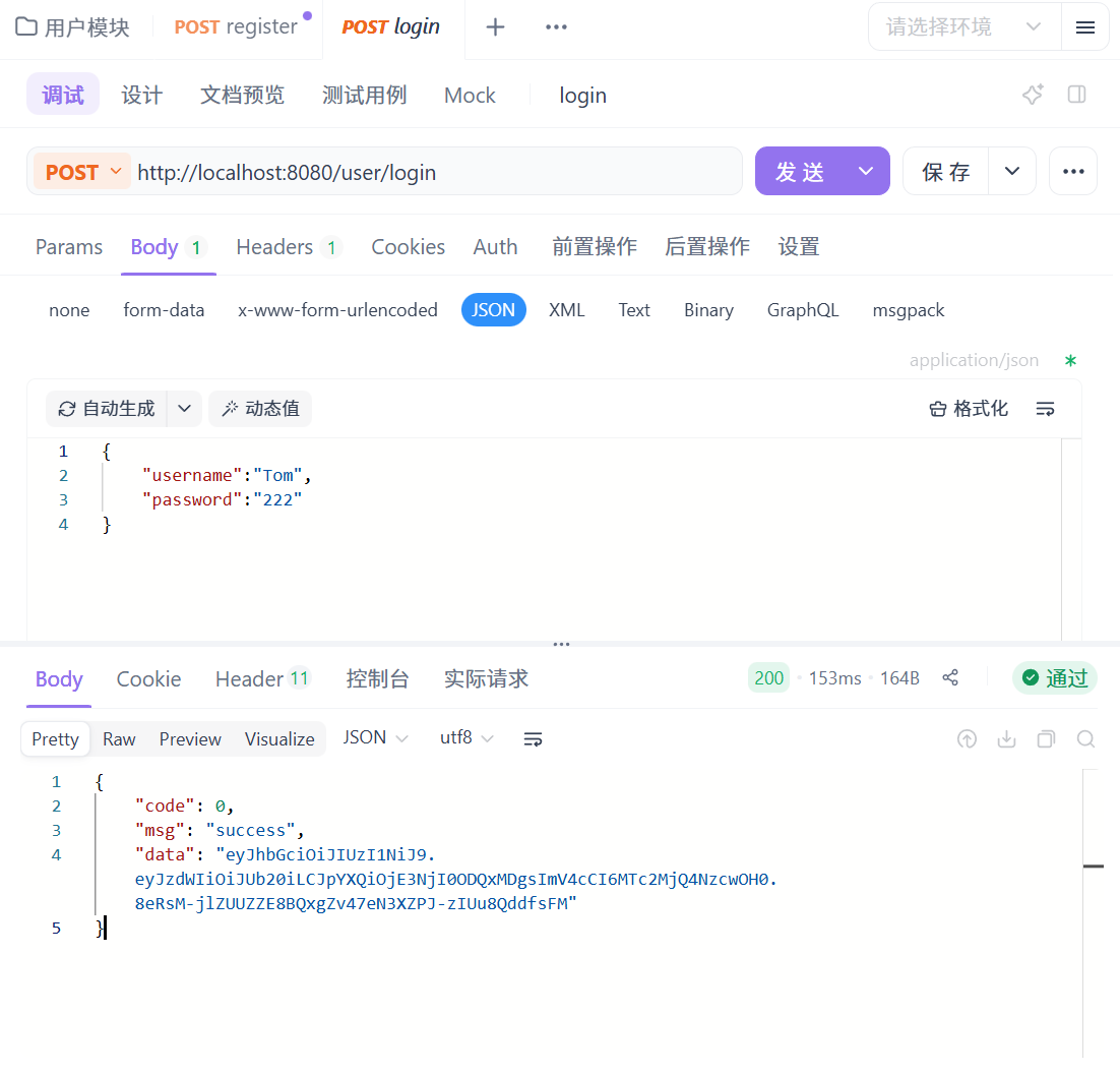 1️⃣ 调用 /user/login → 得到一个 token(字符串)