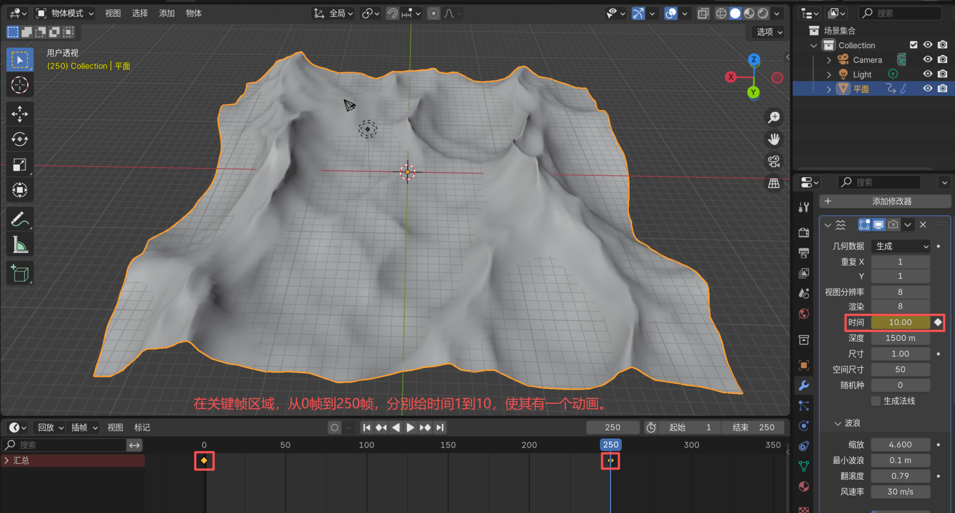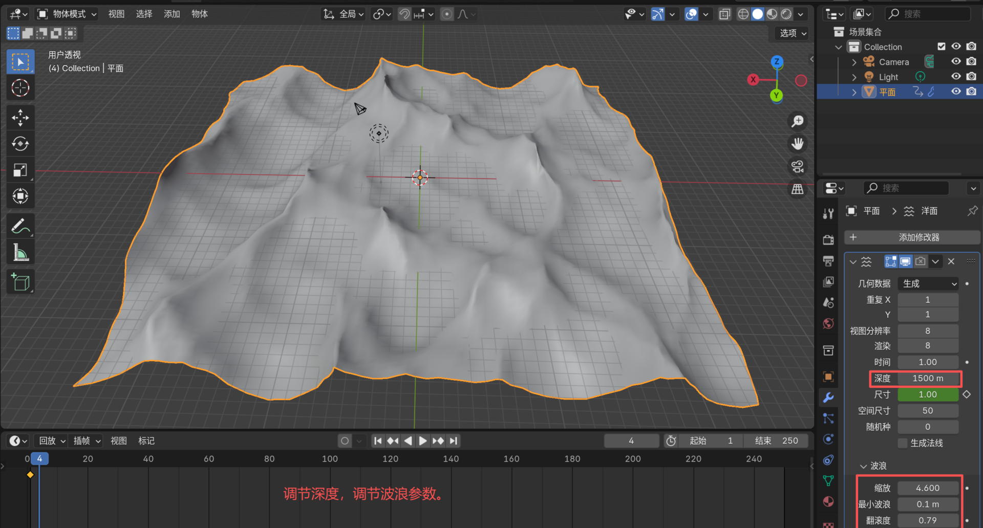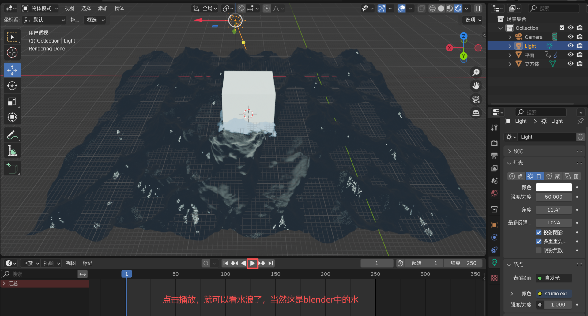 在unity中使用shader构建水之前,先看看在建模软件,如Blender中,简单构建一个水。
