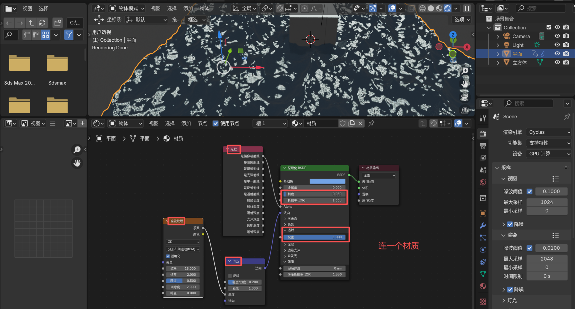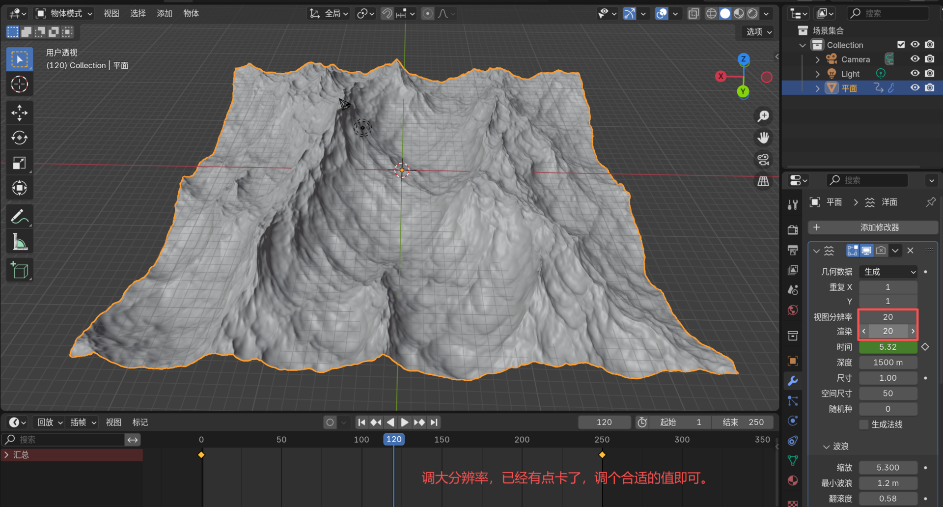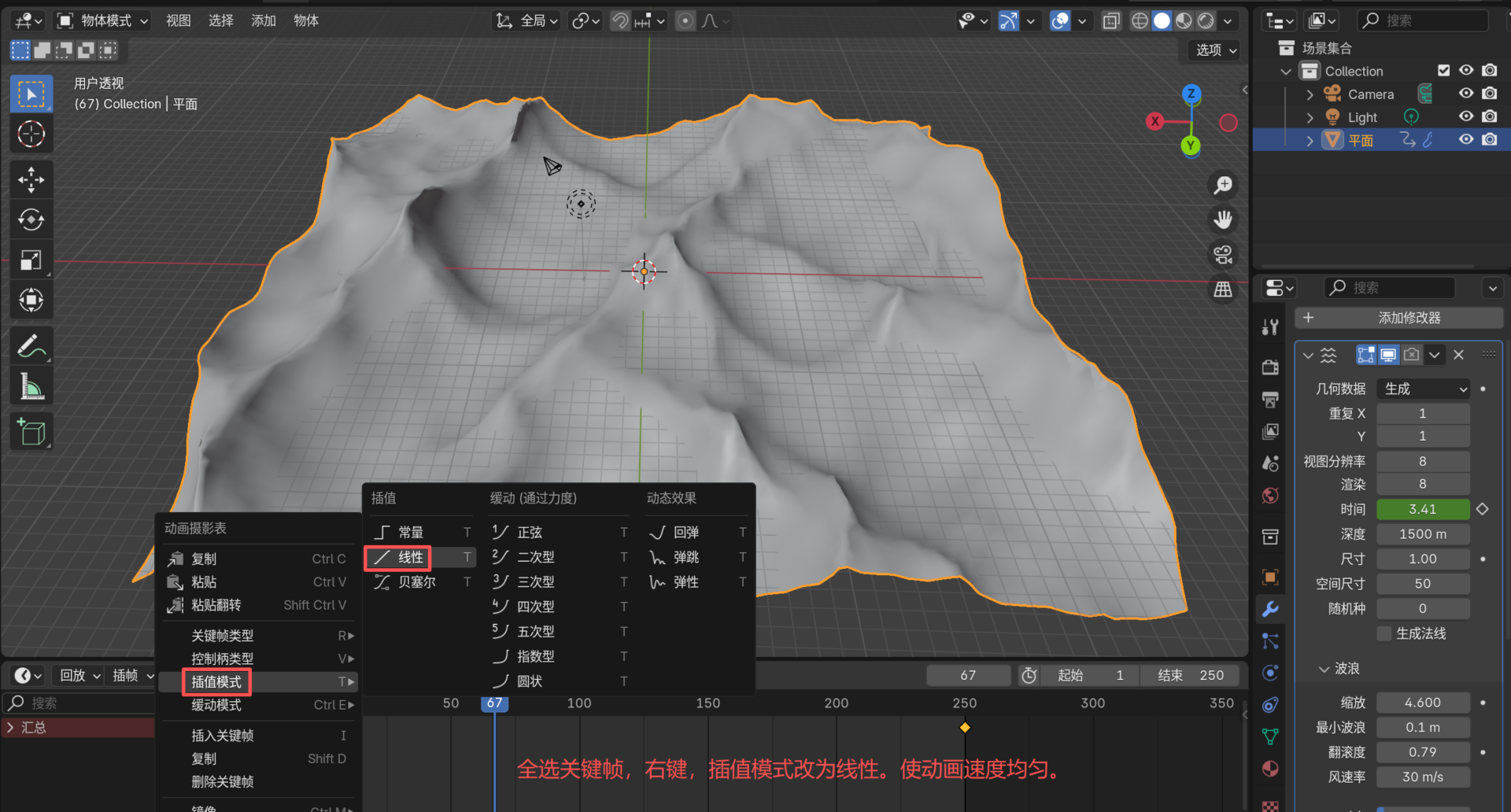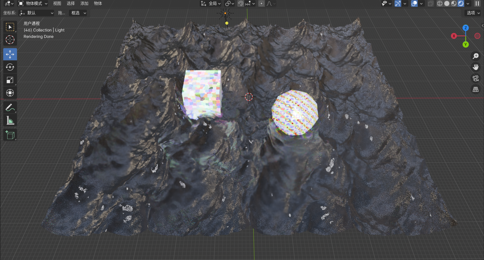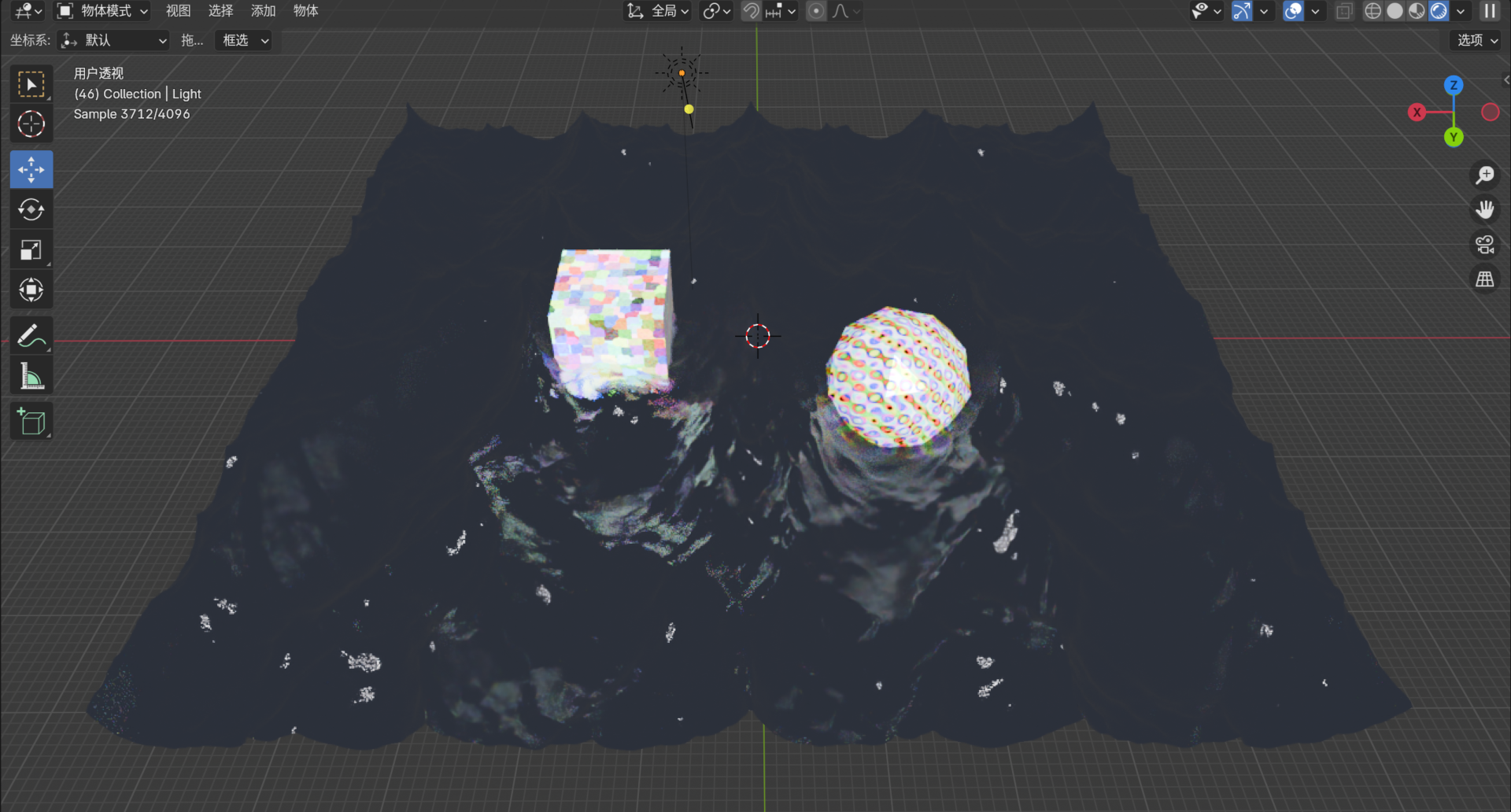 这就是blender中的洋面,c4d有类似的修改器。Z键,将场景模式改为渲染。