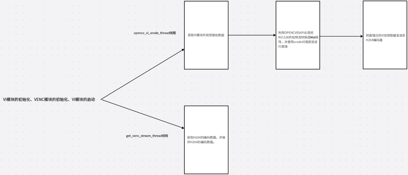 本章节将使用RV1126的视频流结合OpenCV API进行视频腐蚀处理,并完成编码保存。整个流程分为两个核心线程实现: