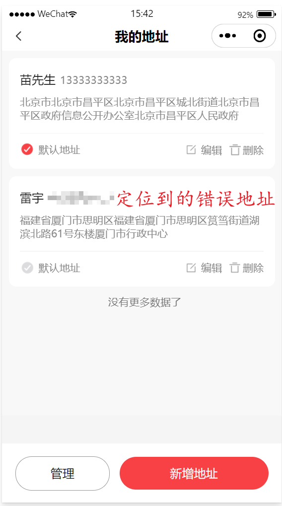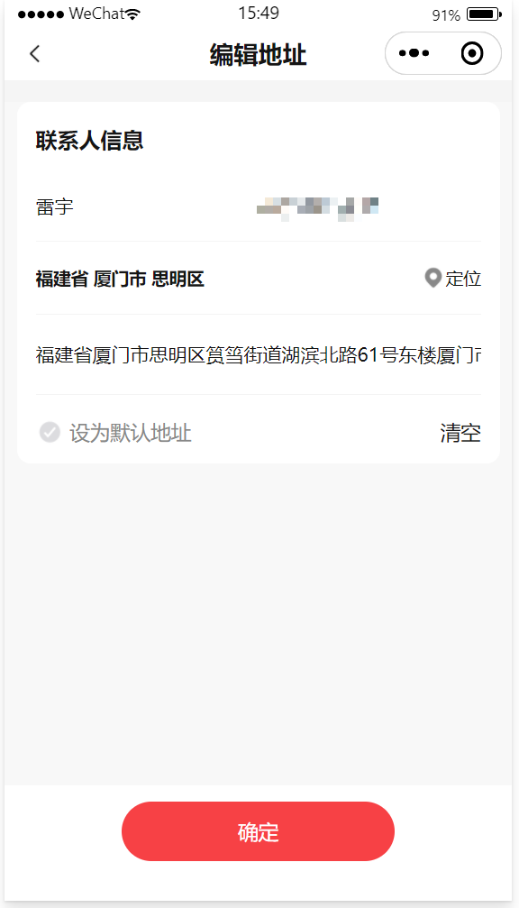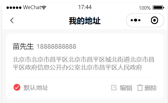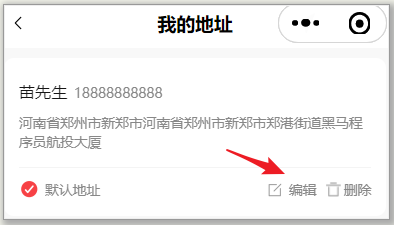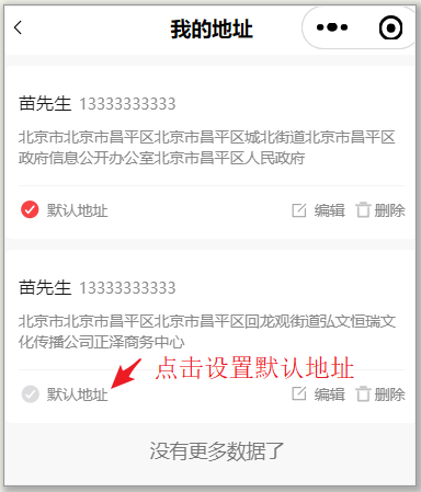 进入我的地址,点击默认地址将当前地址设置为默认地址