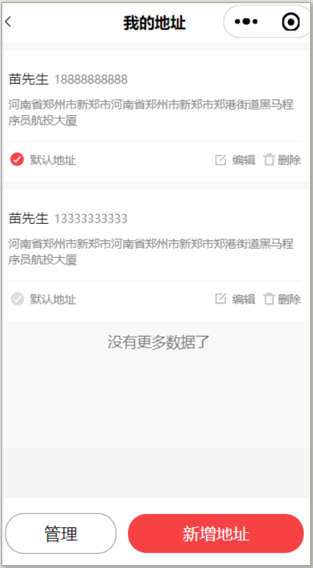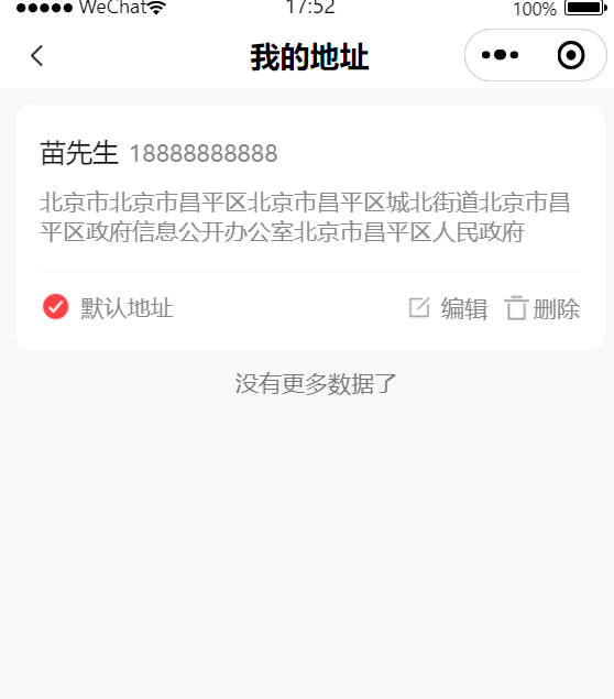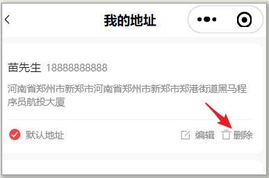 进入我的地址页面,点击"删除"对地址簿进行删除,批量删除也走此接口