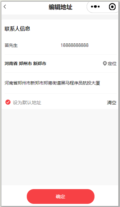 注意:默认地址一个用户只能有一个,如果设置新地址为默认地址,则需要取消旧的默认地址