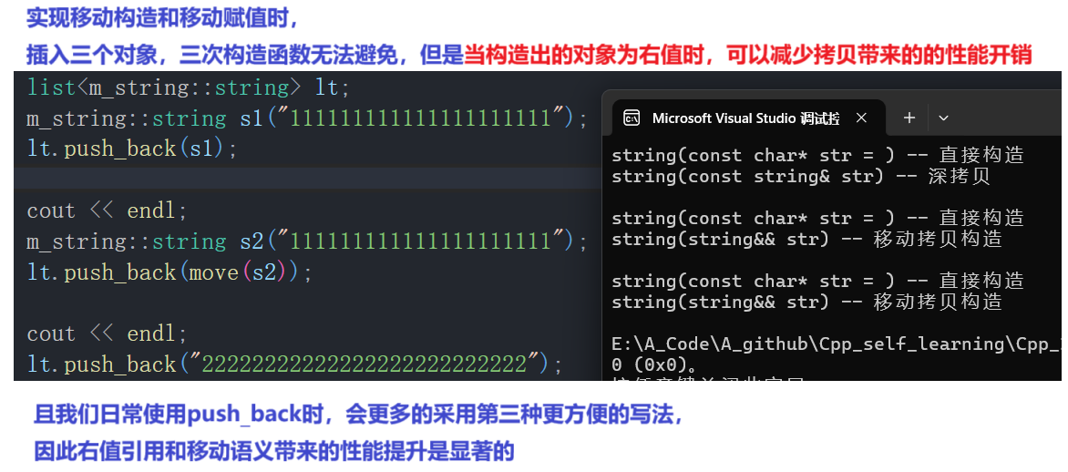 list实现的push_back和insert,参数类型为 const引用 ,左值和右值都会调用const左值引用版本的push_back和insert