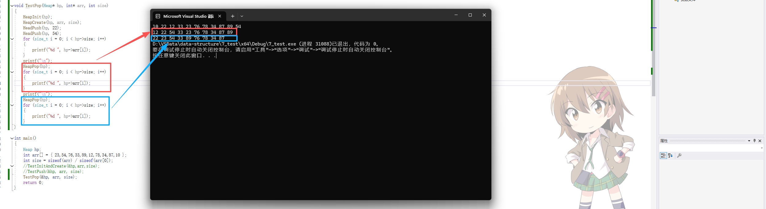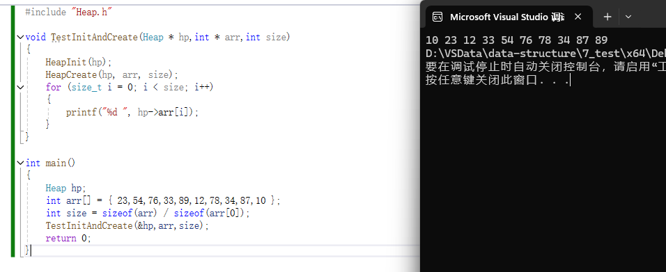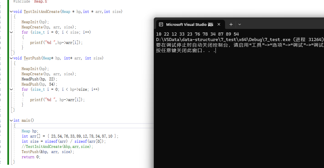printf("堆顶元素为:>%d,堆的元素个数为:%d,堆是否为空:%d\n", HeadTop(hp), HeapSize(hp), HeapEmpty(hp));