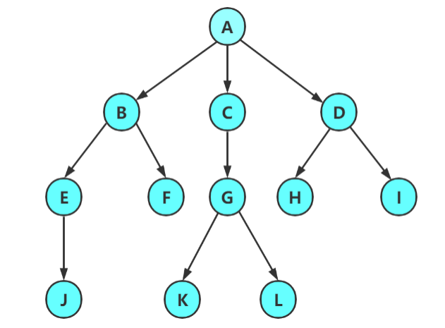 子孙:以某节点为根的子树中任一节点都称为该节点的子孙。譬如:所有节点都为A的子孙.