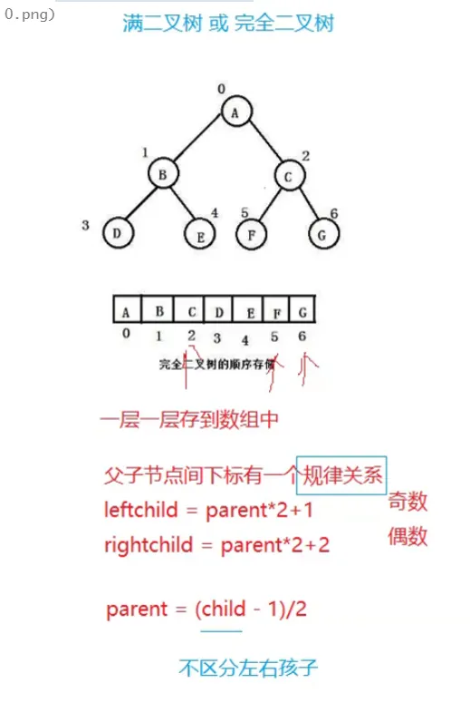 顺序结构存储就是使用数组来存储 ,一般使用数组只适合表示完全二叉树or满二叉树, ,因为不是完全二叉树会有空间的浪费。而现实中使用中只有堆才会使用数组来存储。二叉树顺序存储在物理上是一个数组,在逻辑上是一颗二叉树.