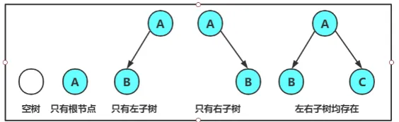 注意:对于任意的二叉树都是由以下几种情况复合而成的: