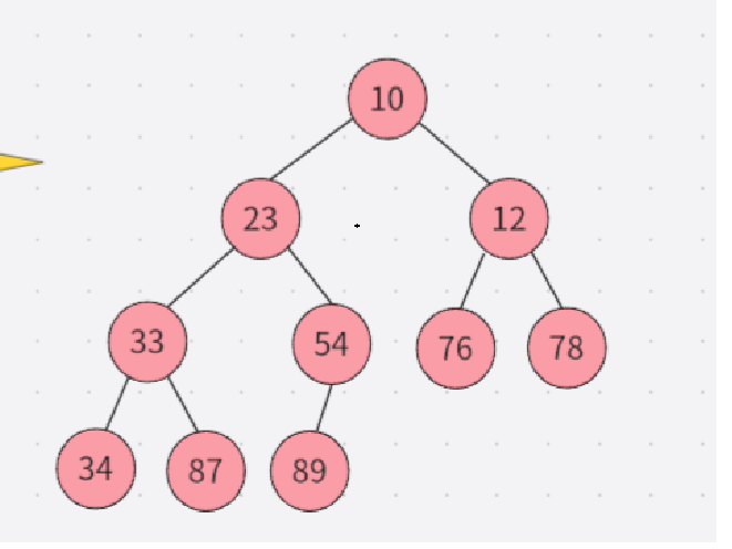 - 若孩子比父亲小,则让该孩子的与其父亲的位置进行交换.并将并将原来小的孩子的位置当成父亲继续向下进行调整,直到调整到叶子结点为止