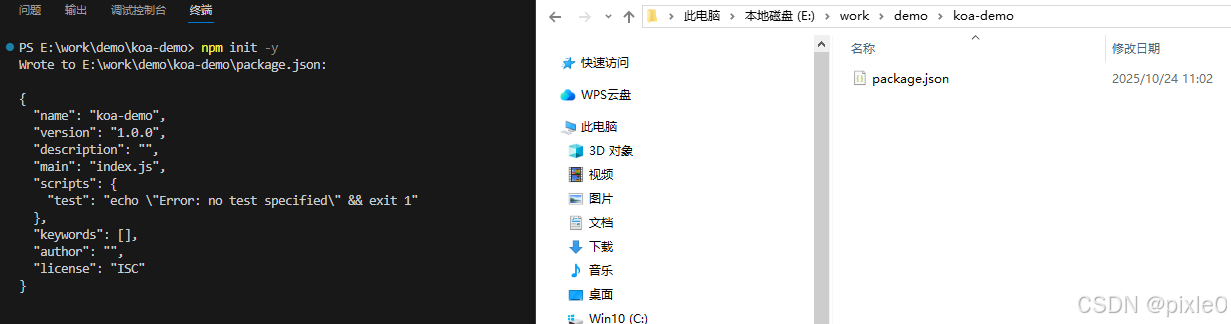 手动创建一个项目目录(例如叫koa-demo)然后打开终端,进入这个目录,执行初始化命令:
