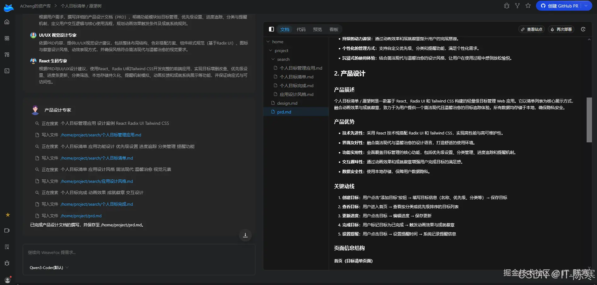 平台自动生成了完整的 PRD,明确了:
