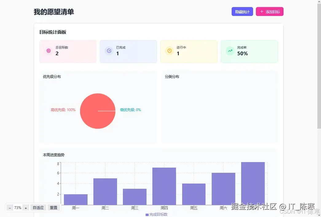 - 完成度统计、分类分布图表、目标趋势分析......