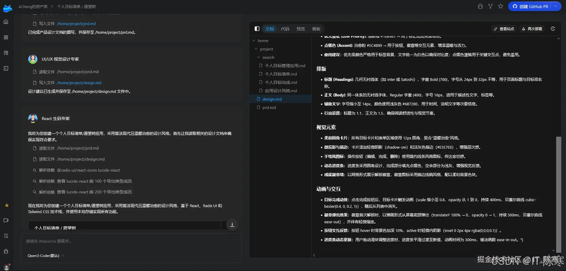 我说完需求,WeaveFox 开始工作。令人惊艳的是------它不仅生成前端界面,而是真正的闭环。