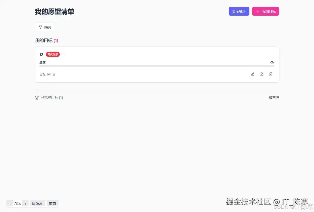 - 目标的增删改查完整实现