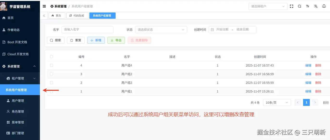 就从"新增一个用户组"这道小入口出发,我把它当成芋道源码学习的第一课:后端以 Spring Boot 的调用链、权限模型;前端以 Vue3 的动态路由、表单校验与权限回显。如果你也在用芋道搭建自己的技术体系,欢迎持续关注,我们一起把这条主线走深、走实。