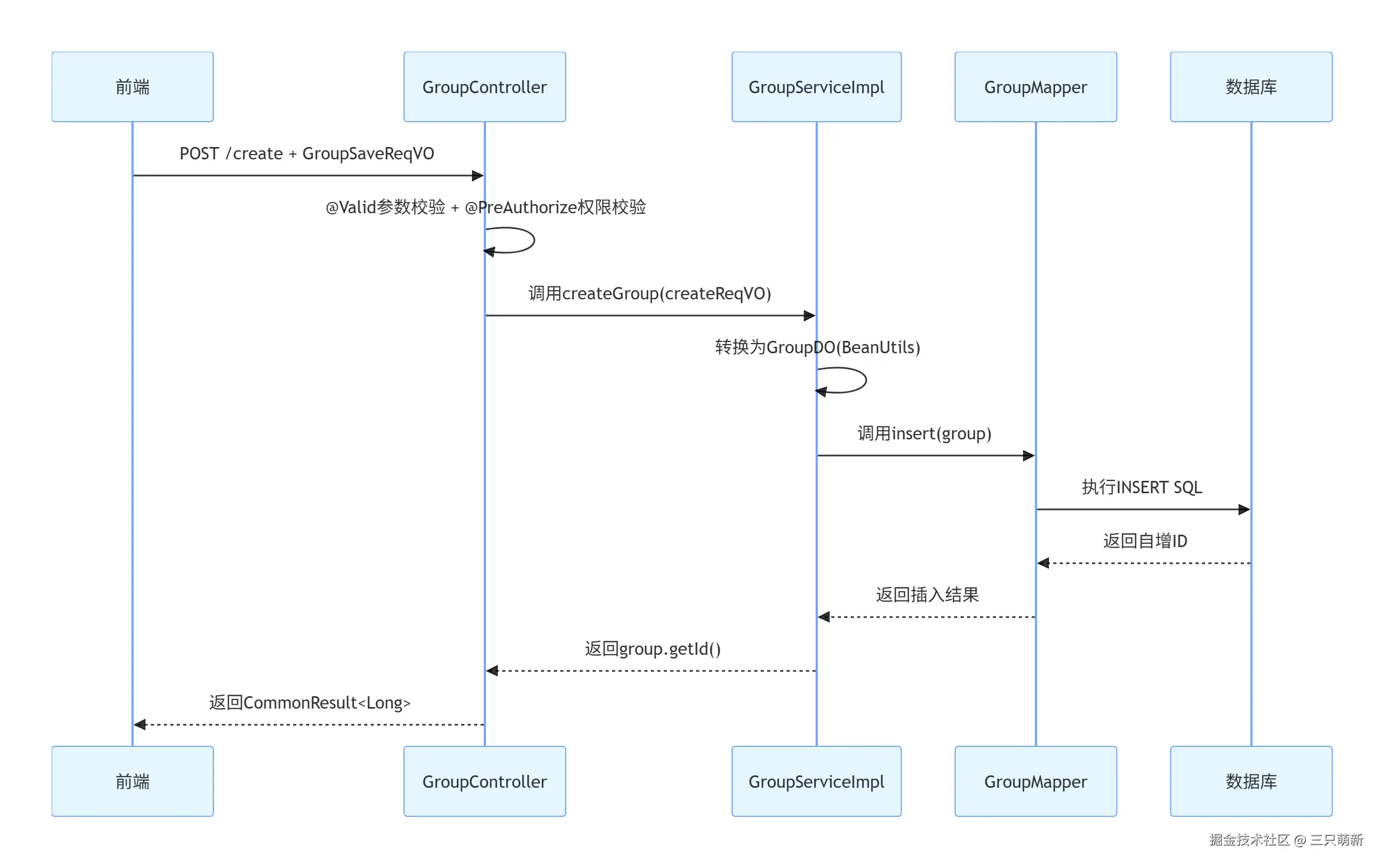 @PreAuthorize("@ss.hasPermission('system:group:create')") // Spring Security 权限校验