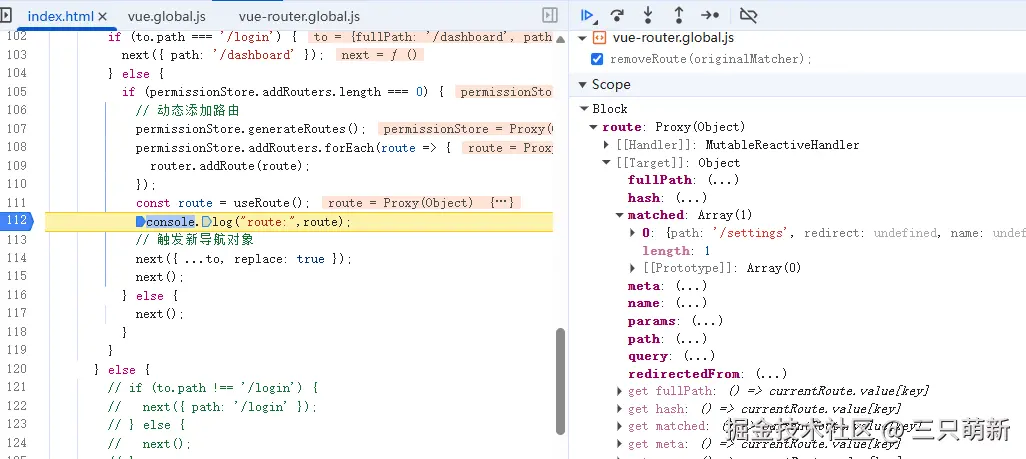 - 通过 next(routeParams) 重新渲染路由视图,否则动态路由不会正确被渲染