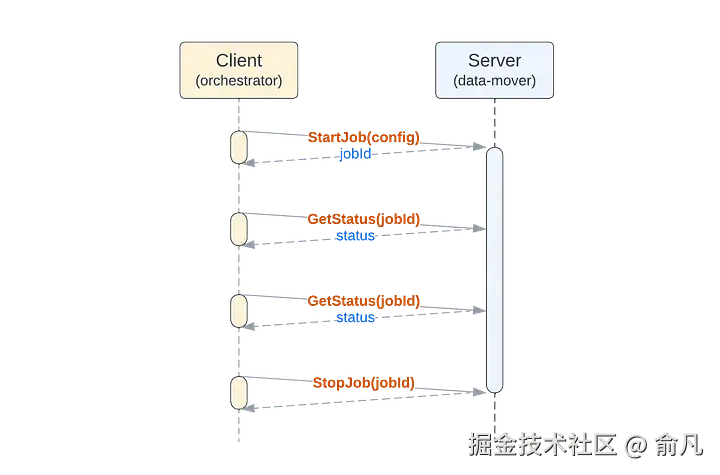 如果有作业,可能需要运行作业系统。对于作业,编排器是请求作业运行的客户端,而数据移动器是实现作业的服务器。