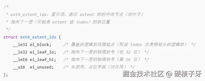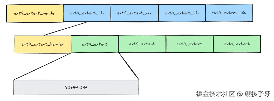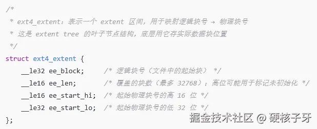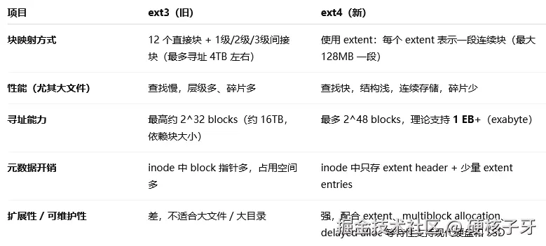 ext4与ext3最大的差异就是在这里,使用extent取代了直接块间接块算法