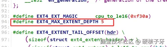 再看ext4的源码,你会发现没有一个属性与extent有关,实际上也存储在这里