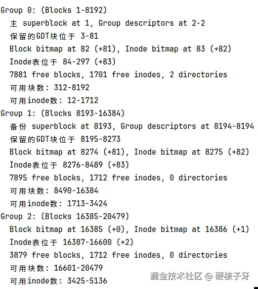 理论上来说,每个块组中的inode数量应该也是8192,因为inode bitmap也占一个block,不知道底层是怎么算出来是1712的,为了ChatGPT,没给出正确的答案