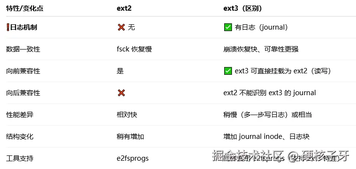 ext3相比于ext2,改变了这些