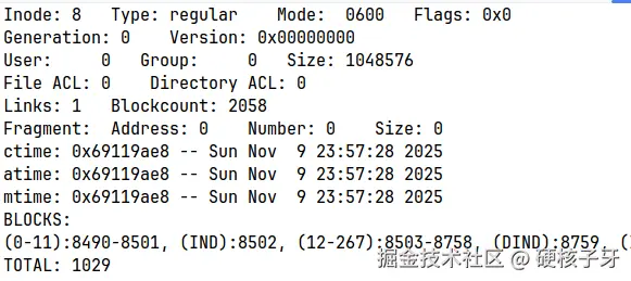 要看懂这里面的信息,需要补一个知识:inode中是如何存储数据库的