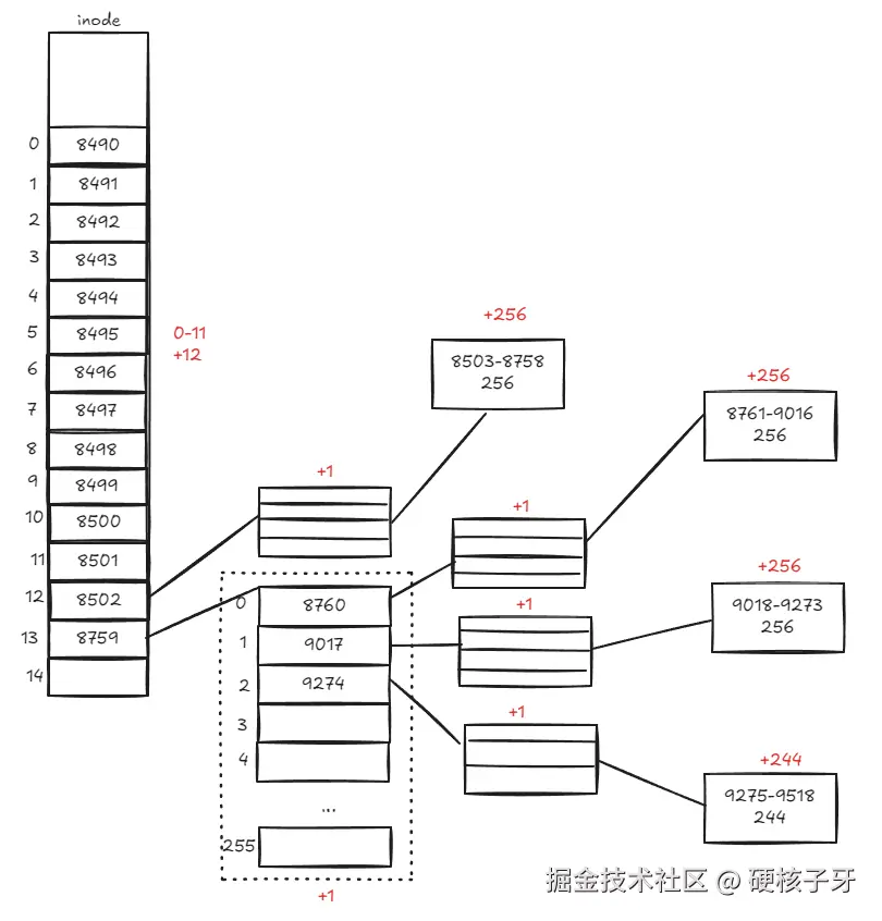 你是否想问,为什么一个block只能存储256个block的值,因为一个block的值是4B,1024除以4等于256