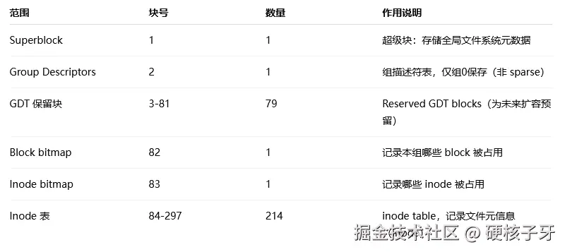 这也只是用了297个block,group 0可用块数是从312开始的,中间的14个block是怎么用掉的,问ChatGPT
