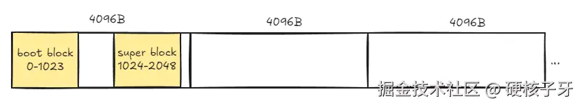 为什么要从1024B开始用呢?因为EXT2的设计规定:超级块必须从1024B开始,grub也会去这个地方读超级块信息