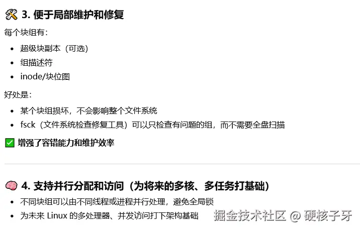 EXT2最大的特色就是引入了块组,为什么要引入块组呢?看ChatGPT给的理由