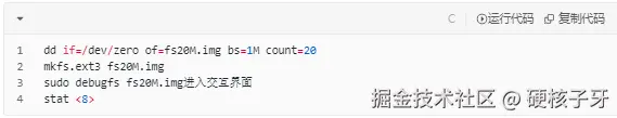 sudo debugfs fs20M.img进入交互界面