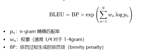 ⚠️ 缺点:词义不同但语义相同的句子 BLEU 可能仍低。