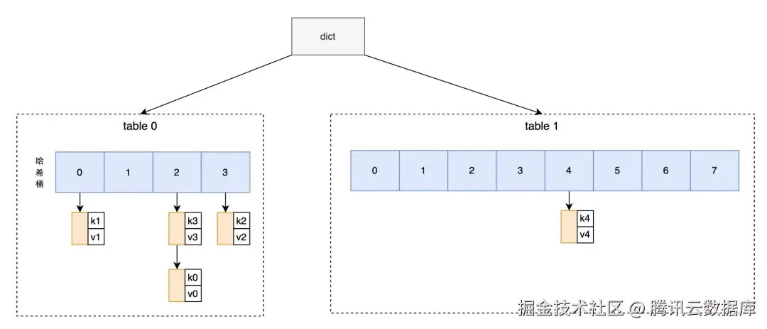 在介绍rehash如何引发时延上升之前,我们需要先了解Redis rehash的基本原理。接下来,我们从Redis的基本数据结构------字典(dict)开始说起。