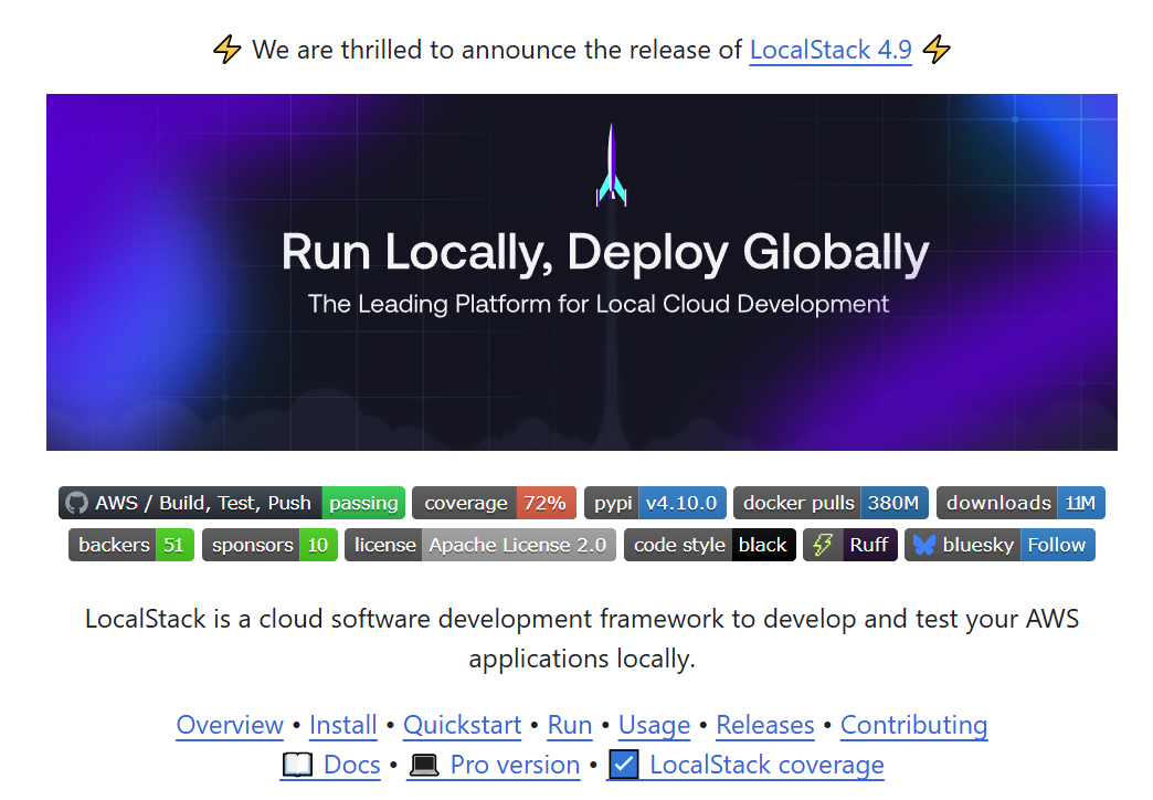 🎯 适用场景: AWS 应用本地开发、云服务测试、CI/CD 集成、云技术学习研究