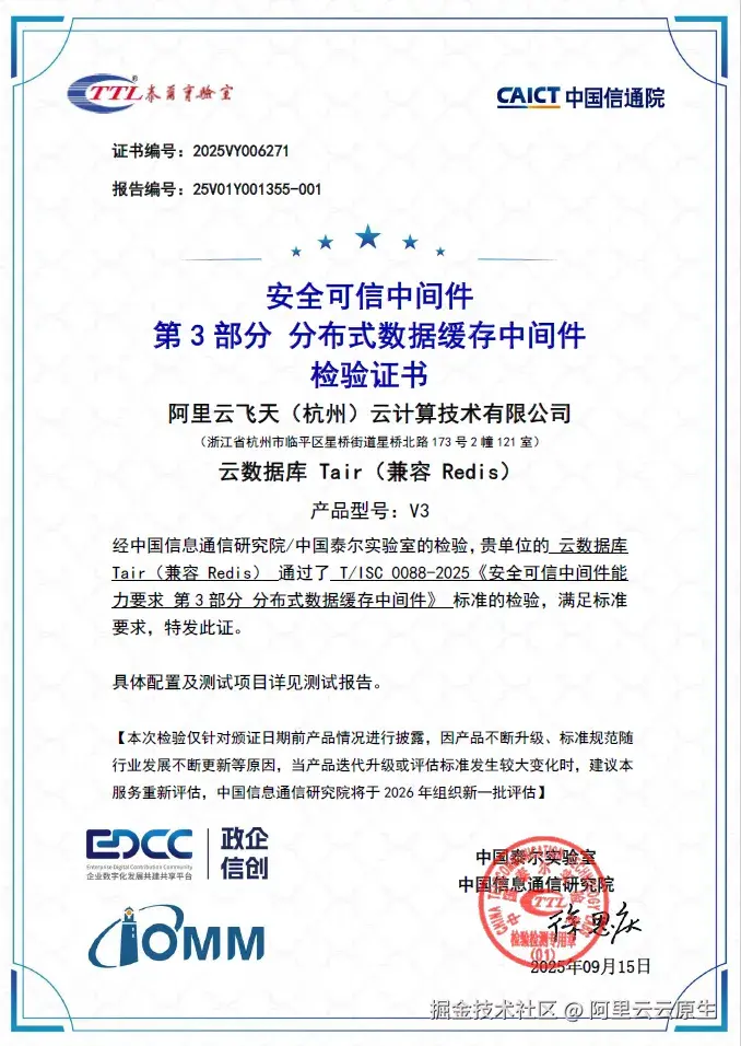 阿里云以 AliEE、RocketMQ、Tair 为核心的安全可信中间件产品矩阵,通过中国信通院评估认证,不仅验证了产品在多架构与安全领域的卓越能力,更为政企用户提供高可用、高性能、高安全的数字化转型底座。