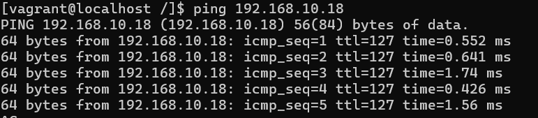 3、重启后使用vagrant ssh连接虚拟机,使用ping命令验证使用相通即可