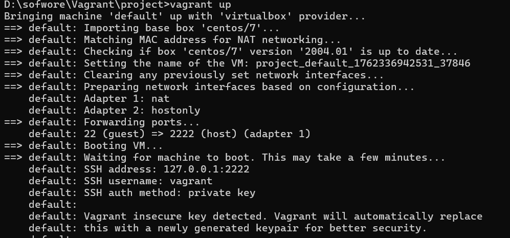 2、运行 vagrant up即可启动虚拟机。系统 root 用户的密码是 vagrant。