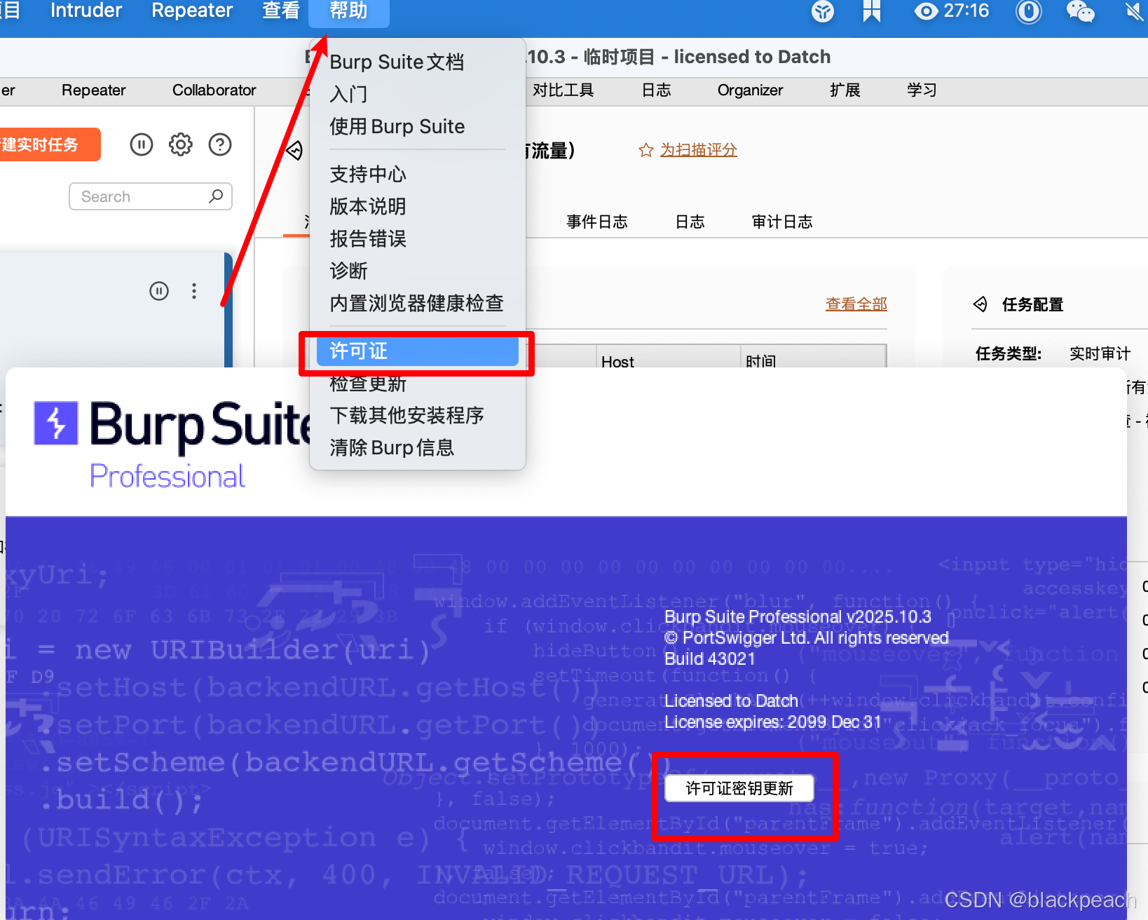 因为我已经激活过,所以我在软件中点击帮助-许可证-许可证密钥更新,来演示重新激活