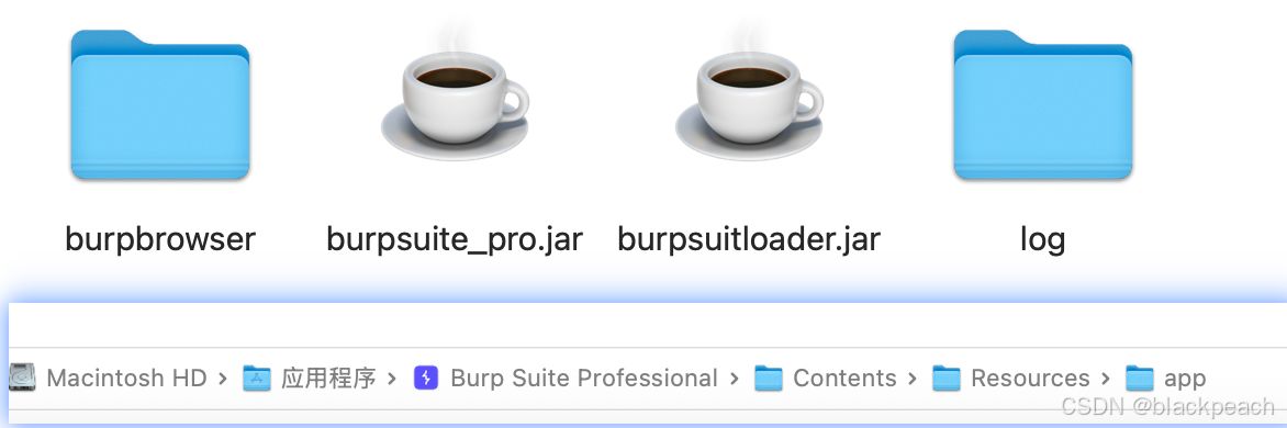 将burpsuitloader.jar下载保存到burpsuite的安装目录的Contents/Resources/app路径【burp的jar包同目录】,将burpsuitloader.jar复制到该路径下